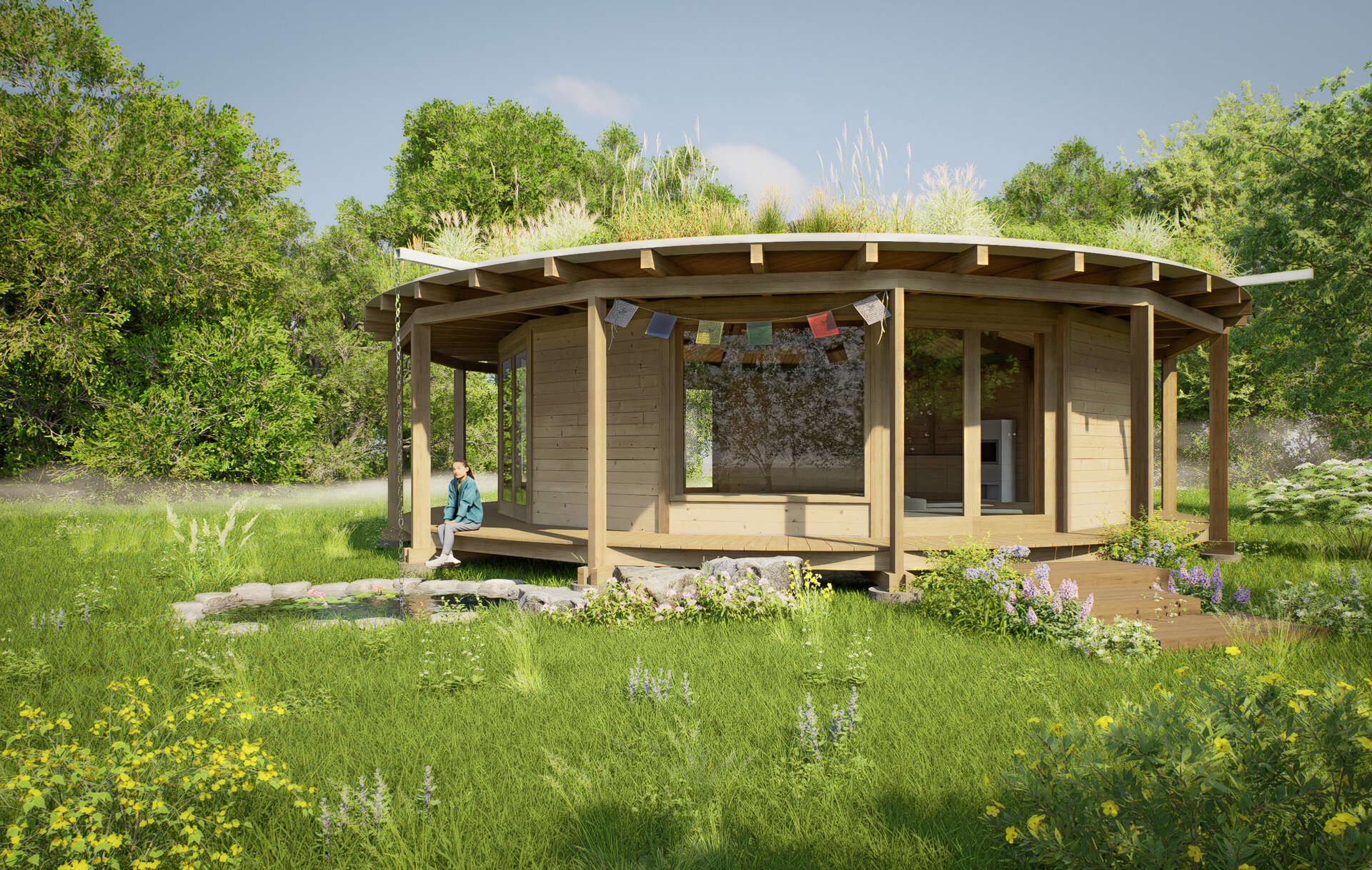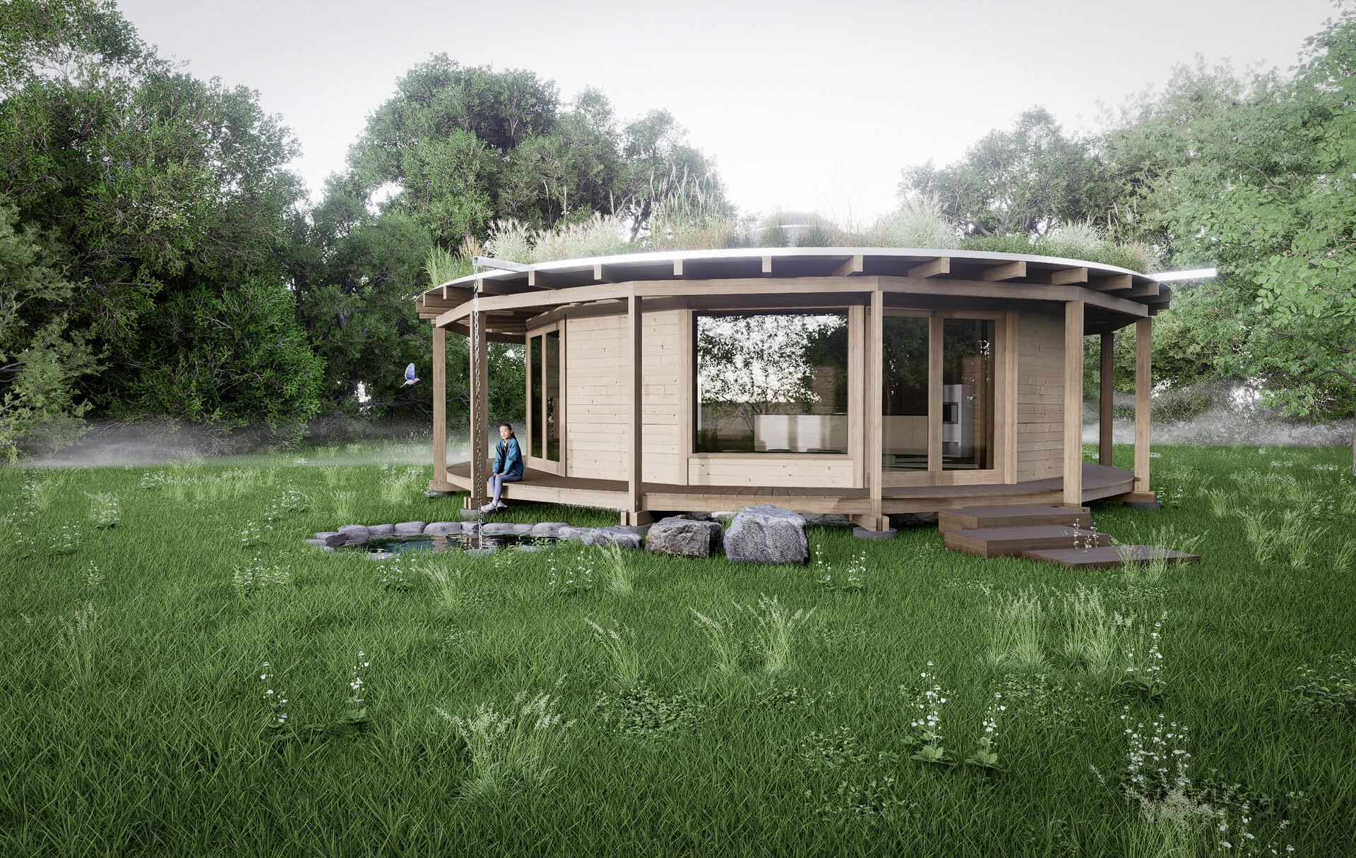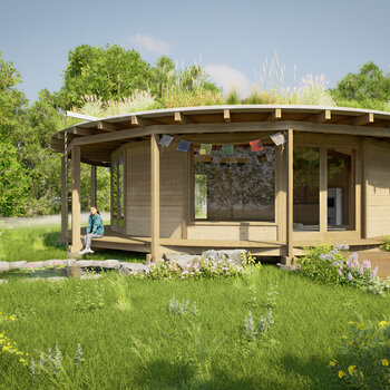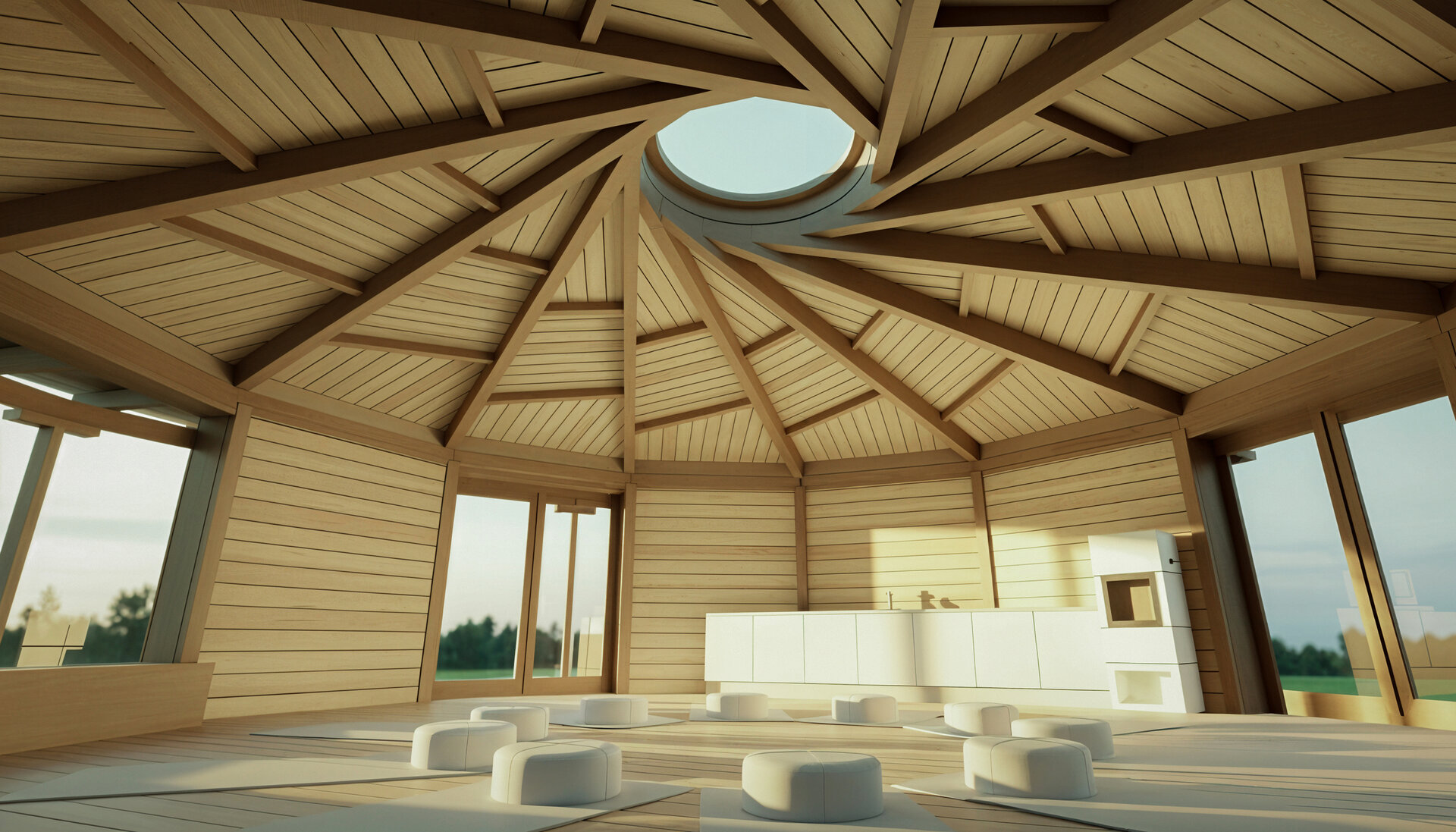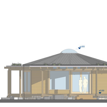 Kruhový objekt určený pro setkávání i meditaci. Stavba bez začátku a konce - prostor soustředění a ticha.