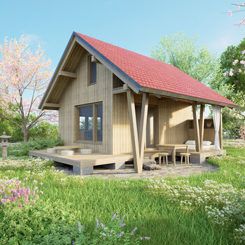 Nejmenší z trojice domů stojí lehce stranou a zachovává si vlastní soukromí. Může sloužit jako dům pro hosty, starší generaci, místo pro tvorbu i odpočinek…