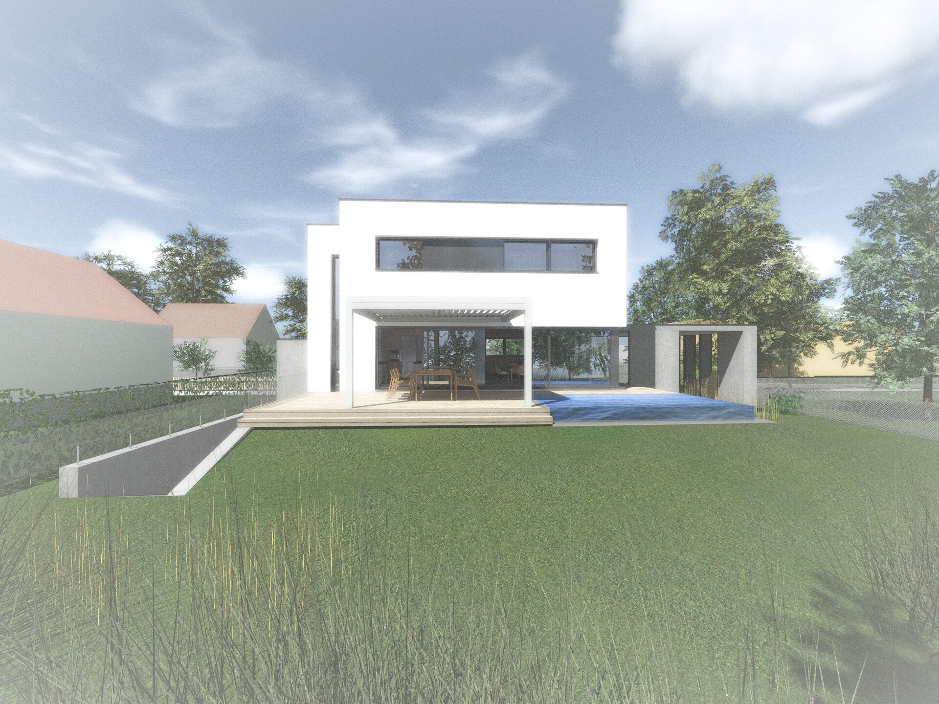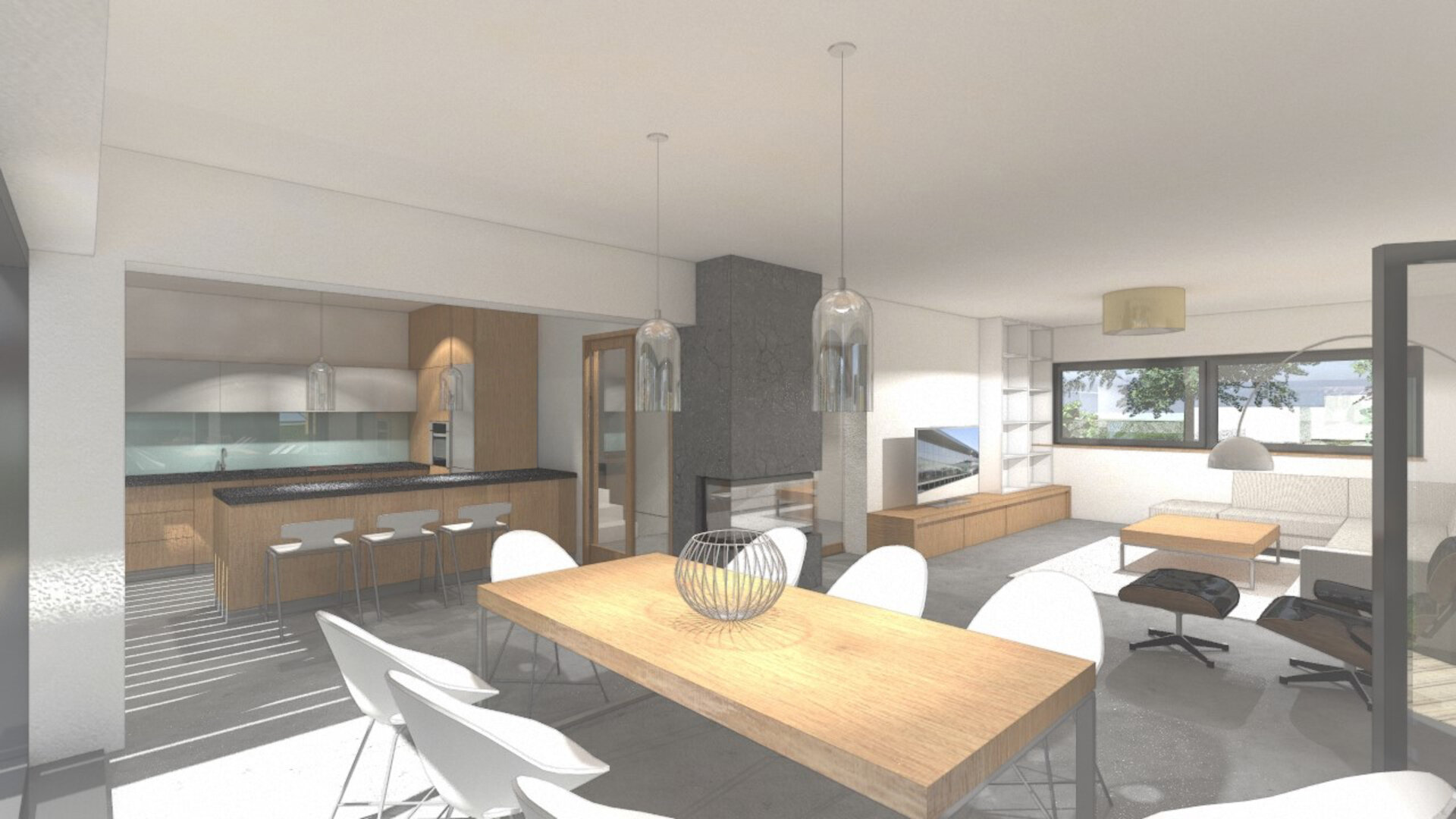 Interiér navržený ve světlých barvách, v jednoduchém, nadčasovém pojetí. Barevně dominuje přírodní dub, bílá a šedé odstíny.