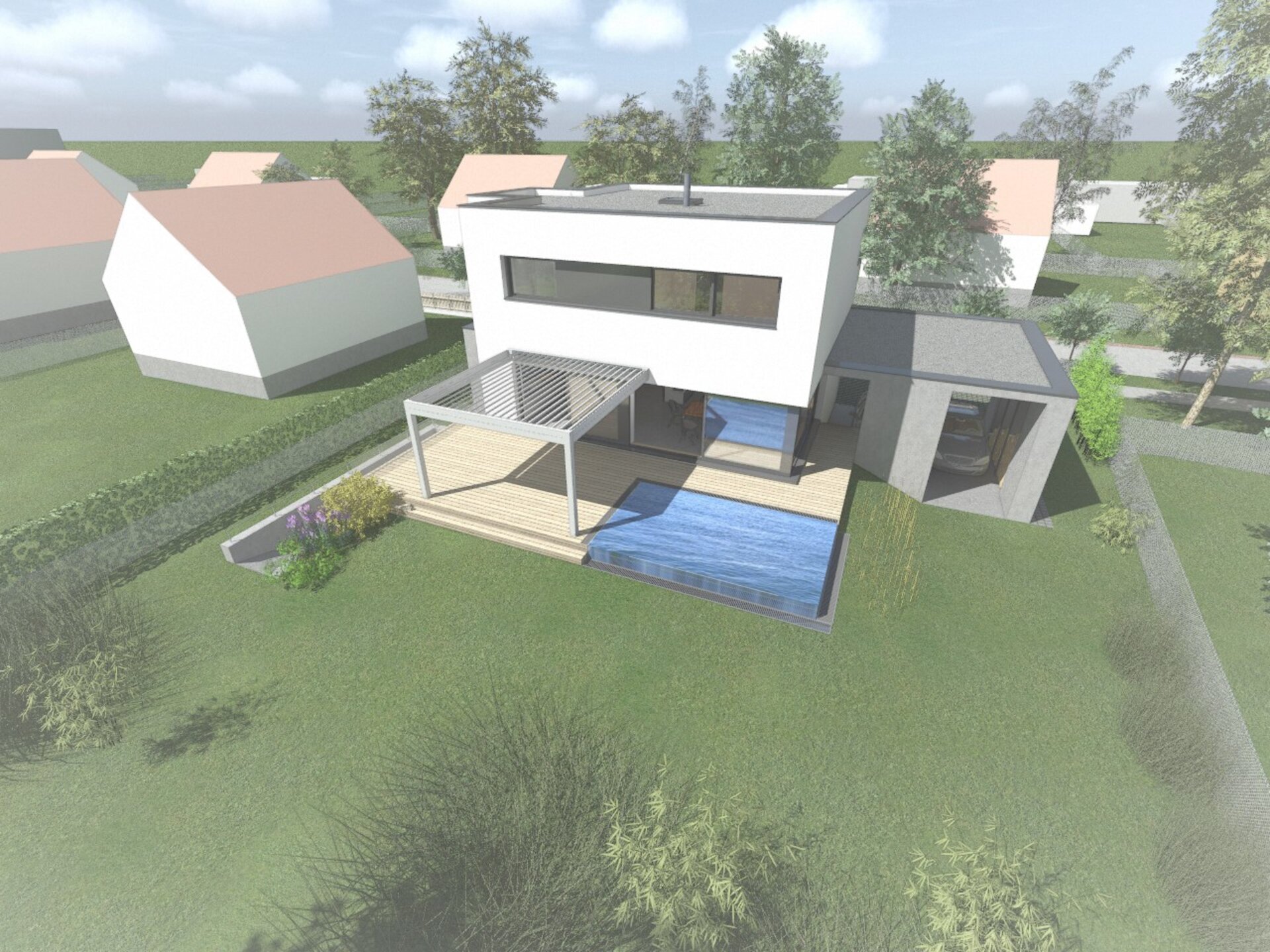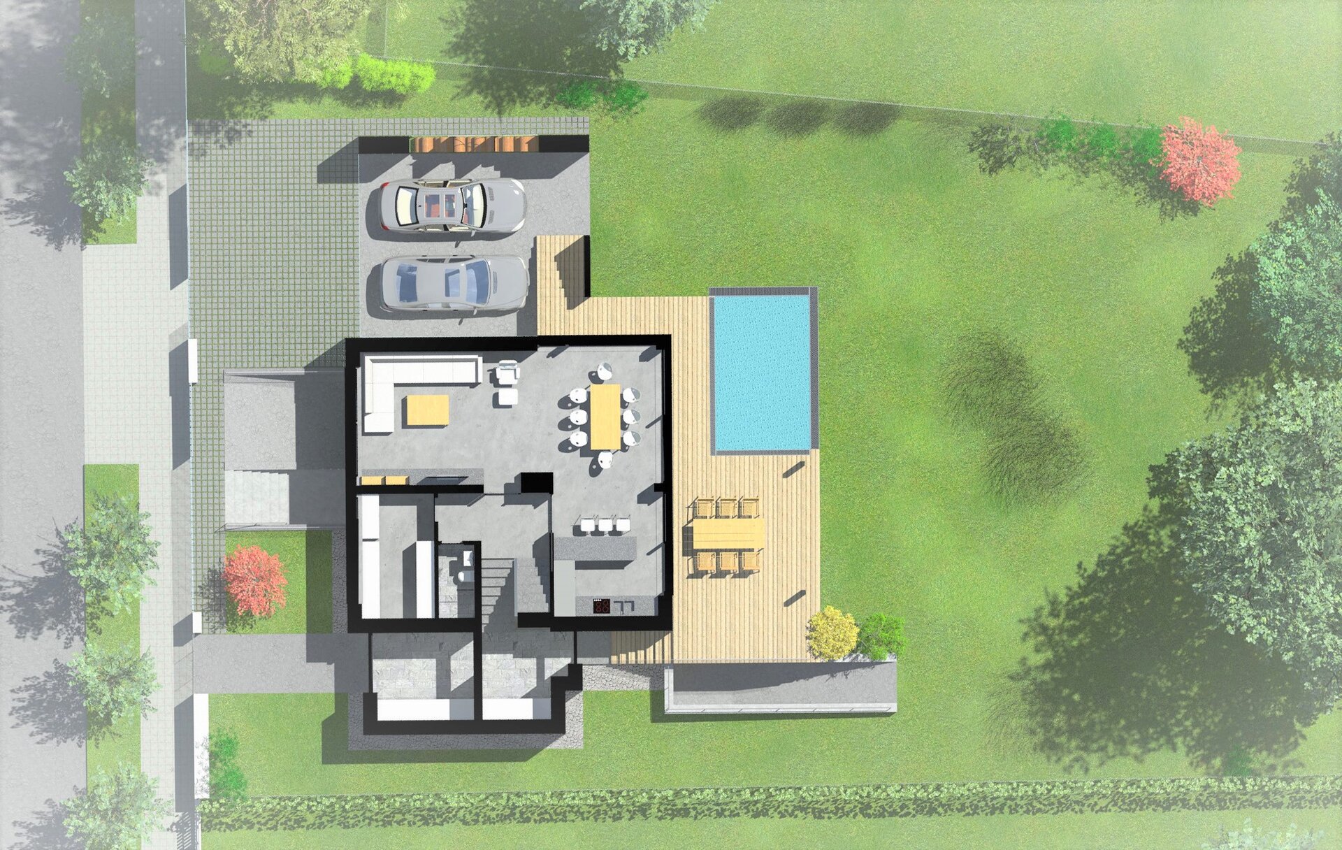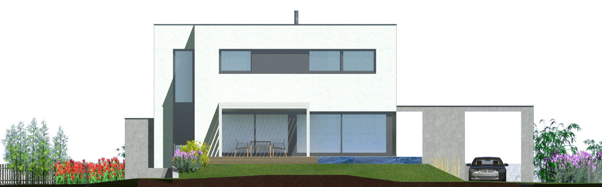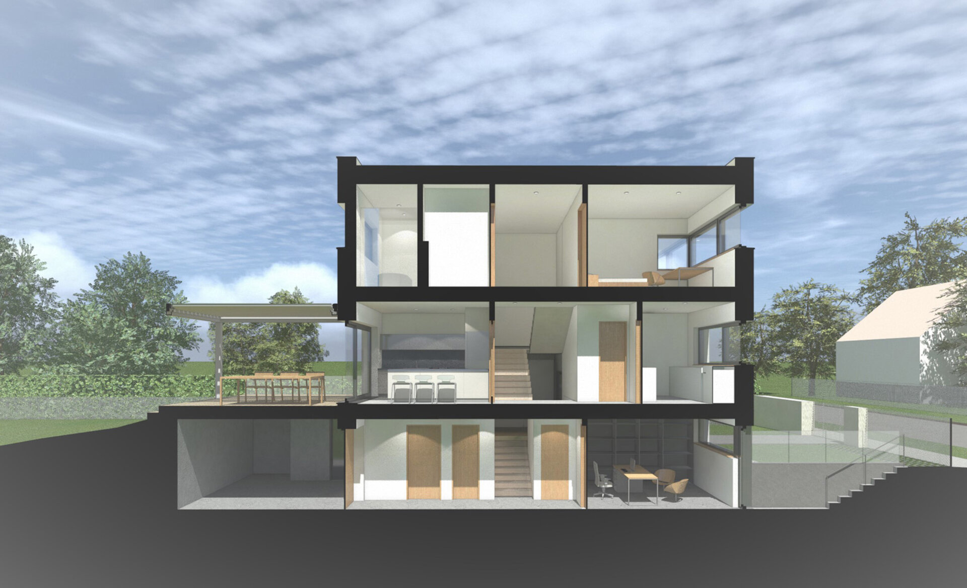 Pro názornost provozních a dispozičních souvislostí je přiložen i řez domem a půdorys celého prvního podlaží i s jeho bezprostředním okolím.