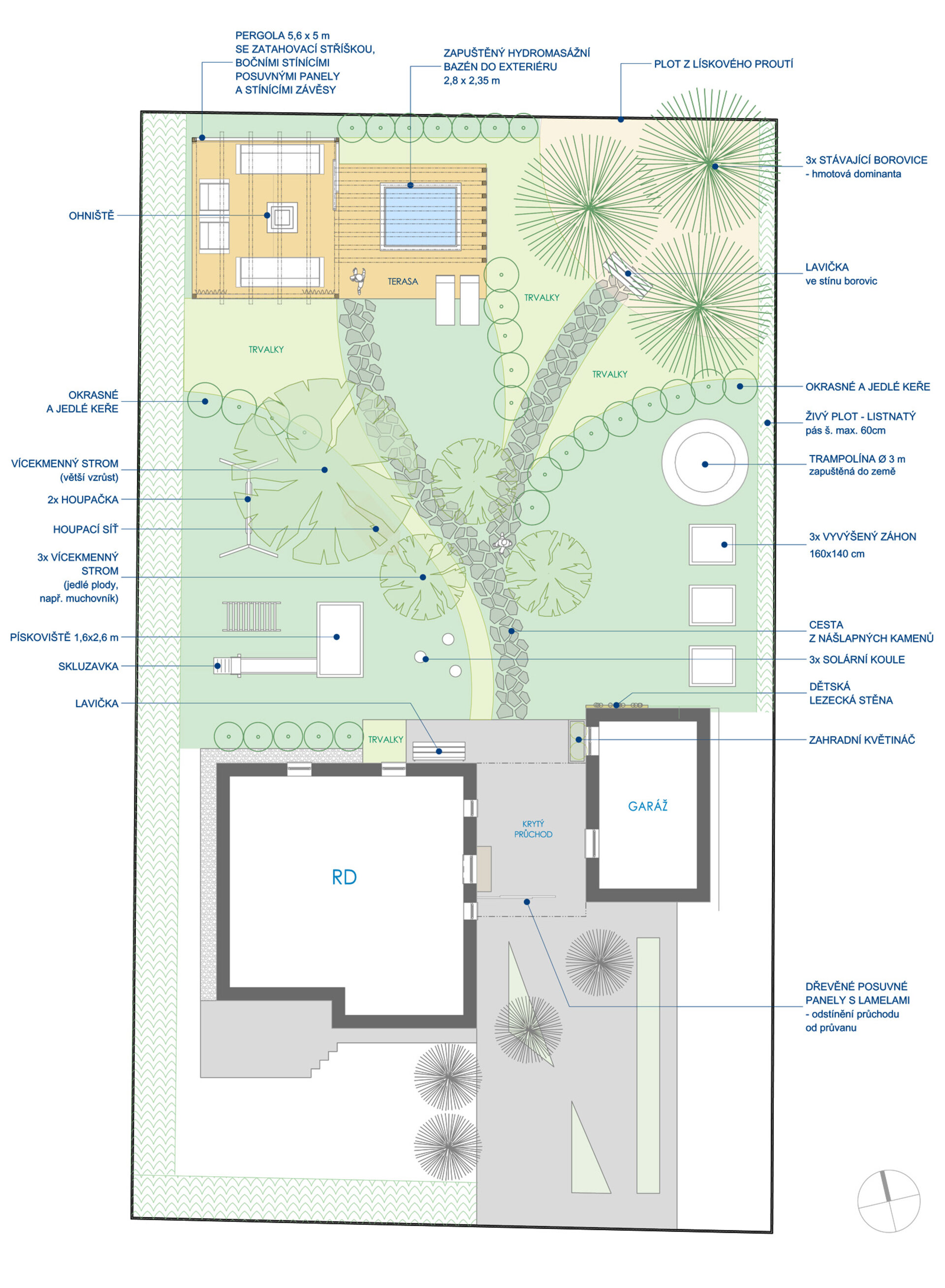 Studie zahrady s pergolou